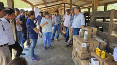 “Como parte de la tarea que nos encomendó el gobernador Zdero, de brindarle al Progano todo el impulso que en los últimos años se le ha negado, estamos en territorio acompañando a los técnicos y los productores”, explicó el ministro del área, Víctor Zimmermann, desde El Espinillo, acompañado por la Subsecretaria de Ganadería, Mariela Kasco, y el titular del Proder, Carlos Corci.