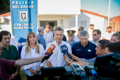 En el marco del aniversario 137° de Colonia Popular, el gobernador Leandro Zdero, junto al ministro de Seguridad, Hugo Matkovich, a la intendente de Colonia Popular, Mariela Soto y al presidente de ECOM, Adrián Veleff, inauguraron un nuevo Centro de Monitoreo y además entregaron uniformes para el personal policial, como así también, equipamiento para la Comisaría local. “Como en tantas otras localidades, articulamos con los gobiernos locales, en este caso, funciona desde la Comisaría local y hemos extendido fibra óptica, como así también, se han instalado 13 cámaras de seguridad. Están instaladas en lugares predeterminados, lugares críticos, que se irán monitoreando tanto los accesos no solamente aquí en Colonia Popular sino también en Puerto Bastiani. Avanzamos y seguimos trabajando en la seguridad de todos los chaqueños para fortalecer la prevención en toda la provincia con más tecnología, uniformes y equipamientos para nuestra Policía”- indicó el Gobernador Zdero.