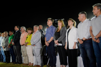 El gobernador Leandro Zdero junto a la vicegobernadora Silvana Schneider, a la intendente de Colonia Popular, Mariela Soto, y a toda la comunidad celebró ayer el aniversario 137° con múltiples obras, como ser la llegada del agua potable, un nuevo Centro de Monitoreo, la inauguración de la iluminación de la cancha municipal, entrega de elementos con la Fundación Soy Chaco y el Instituto del Deporte; firmas de convenios, reconocimiento a antiguos pobladores; apoyo a emprendedores; títulos de propiedad del IPDUV para los vecinos, como así también, la participación de la Cabalgata que se realizó desde Puerto Bastiani a Colonia Popular. “Muy contento de estar acompañando tantos logros y esfuerzo, ratificamos el acompañamiento a su intendente, Mariela Soto, a toda la gente, que le pone alma y vida por todo lo que esperaron hace mucho tiempo, como el agua potable, para toda la zona. Todas las familias tendrán agua potable, como así también la inauguración del Centro Municipal que beneficiará a la comunidad y lo hacemos con el esfuerzo de todos. Seguimos ordenando la provincia y eso nos permite concretar muchos sueños para los chaqueños – manifestó el Gobernador.