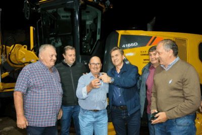 El gobernador Leandro Zdero, acompañado por el ministro de la Producción y el Desarrollo Sostenible del Chaco, Oscar Dudik y el administrador de la Dirección de Vialidad Provincial (DVP), Omar Canela, entregaron una motoniveladora para el Consorcio Caminero N° 10 de Mesón de Fierro, adquirida a partir de una importante inversión entre la Asociación de Consorcios y el Nuevo Banco del Chaco, a través del sistema Leasing.